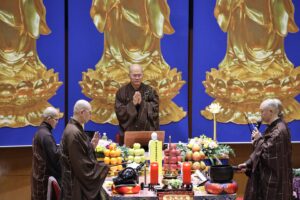 法會接引全世界善男信女的參與,藉由集體的真誠心與善心凝聚強大的正能量,對社會產生積極的影響。這種集體的實踐,有助於促進社會的和諧,傳遞愛與關懷。三時繫念法會不僅是儀式,更是善的意念與願力的凝聚,能化解個人及其社會的災厄,更對整個社會的和諧發揮積極的作用。