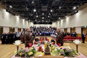 日本太和淨宗學會于二〇二四年九月,於東京都第一ホテル両国舉辦護國息災尊師三時繫念法會,恭請尊敬的上悟下行法師主法,引領逾200位同修大德虔誠諷誦《阿彌陀經》、念咒、開示、懺悔、發願、回向。在彌陀聖號中,祈願歷代祖先往生西方極樂世界,永離業海,直證不退,圓滿無上菩提