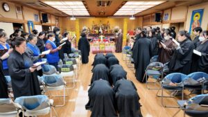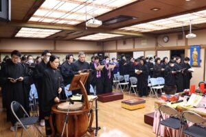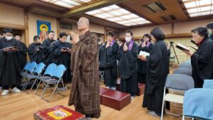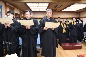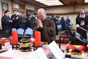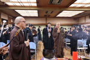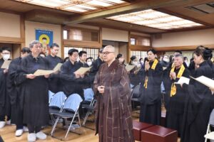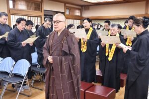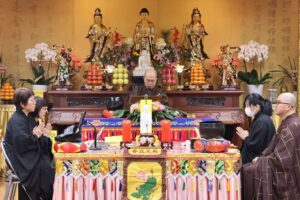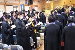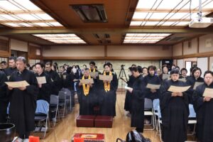 日本太和淨宗學會主持大和尚,尊敬的上悟下行法師,慈悲不捨日本一方眾生,繼11月初於東京兩國主持孝親報恩念佛護世息災三時繫念法會之後,不辭辛苦,與百忙之中回到太和,親自主持了為期兩天的歲末孝親報恩念佛護世息災三時繫念法事,並在太和道場進行了為期八天的《了凡四訓》課程,師父以平和溫潤的語調,將經典智慧轉化為生活中可觸可及的踐行指南。“命由我作,福自己求”——這八個字像種子般落入心田,隨著講解生根發芽。家人們時而凝神靜聽,時而會心微笑,法喜充盈的感受持續升溫,為新年修行注入了清澈的力量與明確的方向。感恩法師!