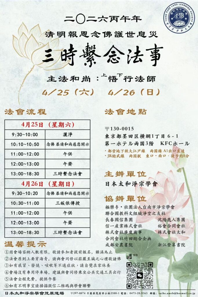 📣 二〇二六丙午年清明報恩念佛護世息災三時繫念法事通知